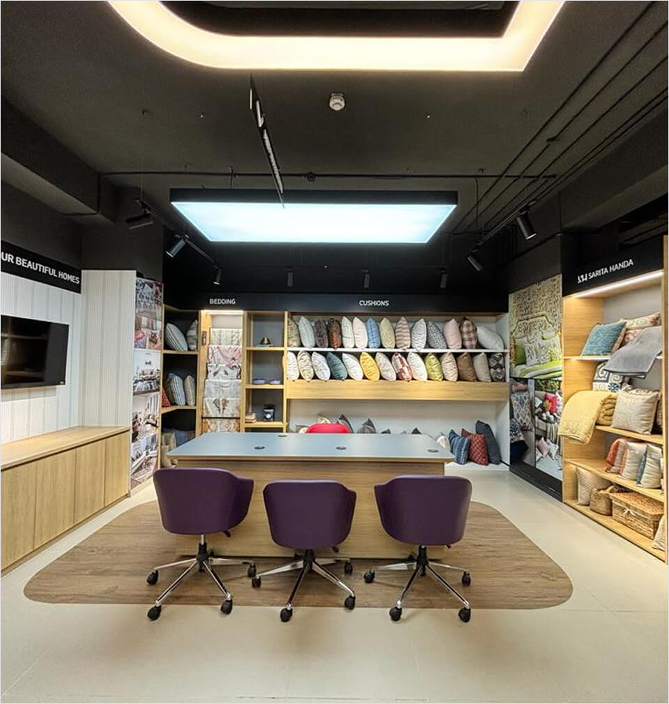 Maestro Interior Solution executed a 6,000 sq. ft. general contract project for Asian Paints in Nagpur. The project involved the creation of an experience center showcasing the brand’s products. The design aimed to reflect the style and vision of Asian Paints. The space was designed to provide an immersive brand experience. High-quality materials were used to ensure the project’s durability. The project was completed within the stipulated timeframe. Client satisfaction was achieved through meticulous execution. The design reflects a commitment to innovation and quality. The project serves as a testament to Maestro Interior Solution’s expertise in retail spaces.