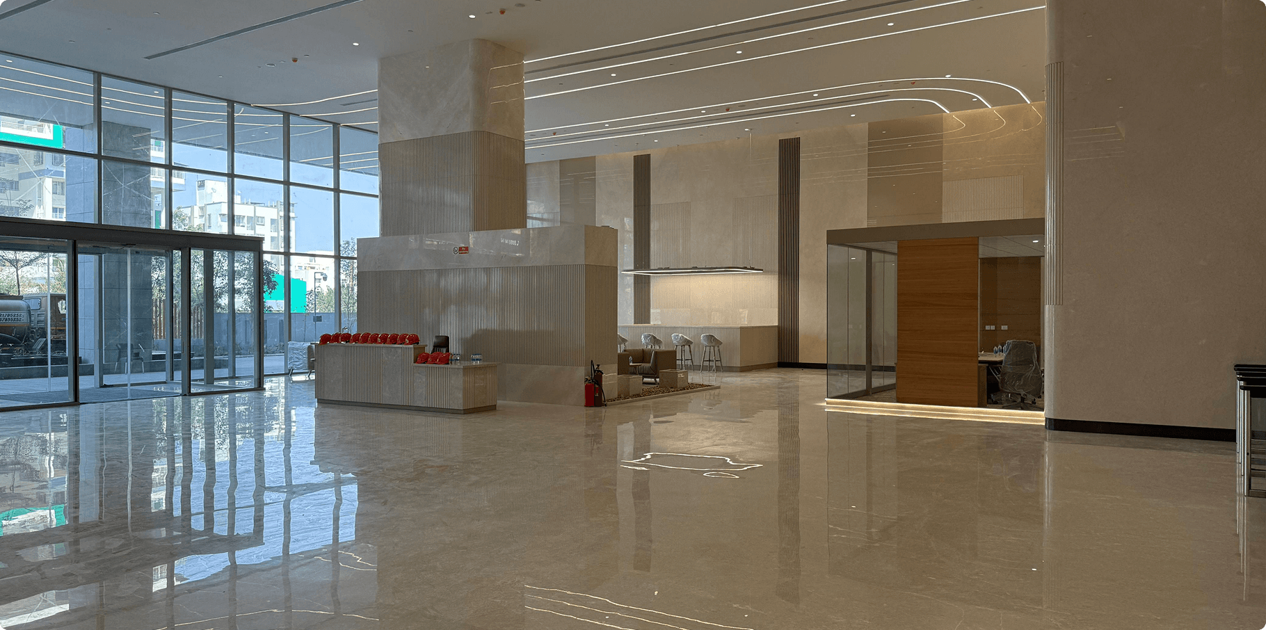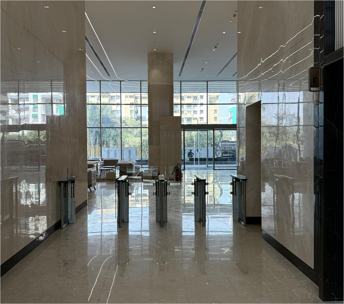 Maestro executed the civil and interior finishes for the premium entrance lobby at K Raheja’s Baner property. The project emphasized luxury and durability in a high-footfall zone. Italian marble flooring, wall cladding, and contemporary ceiling features were installed. A clean, inviting reception design was created using soft lighting and modern finishes. Vertical circulation areas (lifts and stairwells) were refined for visual consistency. The lobby serves as the gateway to a corporate tower, designed to leave a lasting impression. Construction was carried out with minimal disruption to tenants. The space now reflects the Raheja brand’s prestige and attention to detail.