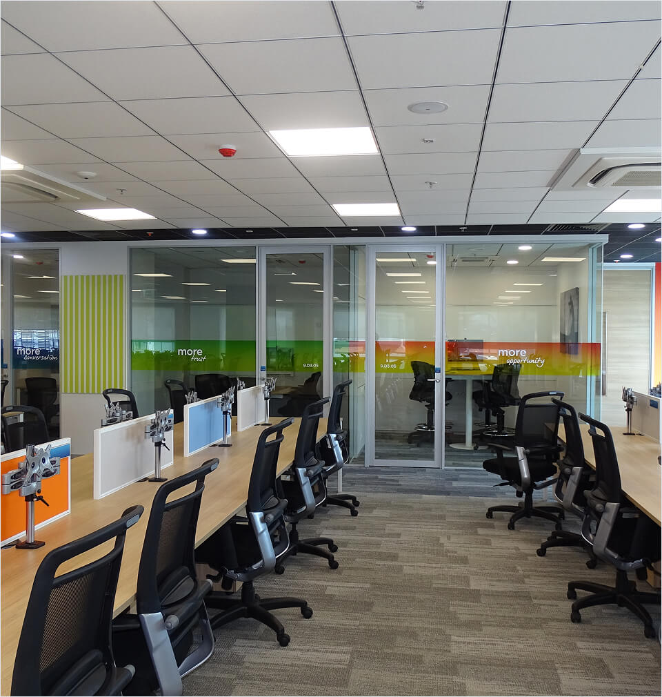 Maestro Interior Solution executed a 30,000 sq. ft. interior and civil project for Valence Health Solutions in Pune. The design featured premium Italian marble flooring and bespoke modular glass partitions. Acoustic gypsum ceilings were installed to enhance sound quality. Specialized false flooring was implemented in server rooms for optimal cable management. Custom-designed workstations were crafted to meet ergonomic standards. The project aimed to create a modern and functional workspace. Attention to detail ensured a seamless blend of aesthetics and utility. The use of high-quality materials contributed to the project’s longevity. The design reflects a commitment to innovation and quality. The project was completed on schedule, meeting all client specifications.